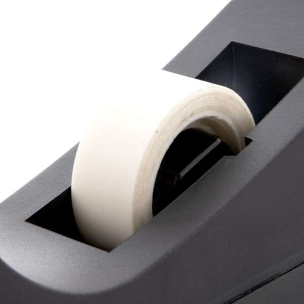 - Durable tape dispenser made of impact-resistant plastic.