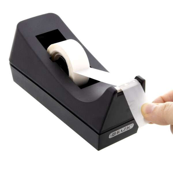 - STURDY. Durable tape dispenser made of impact-resistant plastic for long-lasting strength. Perfect for office, school, home, mail room, shipping department, and sample room