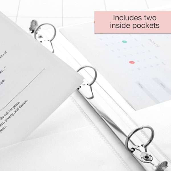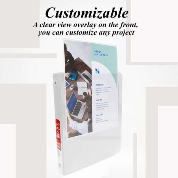 - GREAT DURABILITY. Designed and manufactured with enhanced durability featuring a tear-resistant cover with clear transparent view covers to insert or customize your binder on the front, back and spine. Two interior pockets for extra storage.