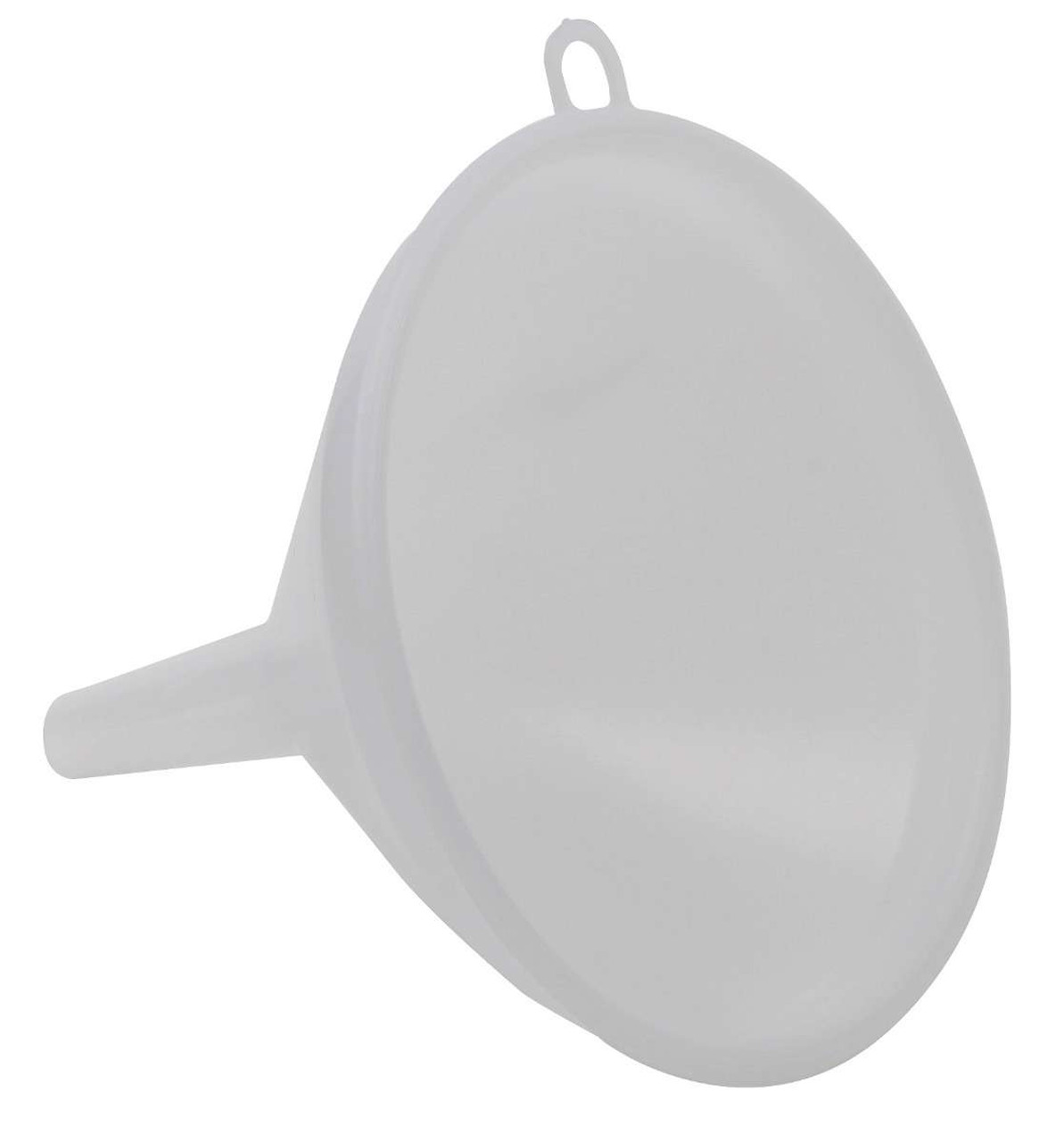 - Upper portion of funnel is straight sided, helps prevent spill-over