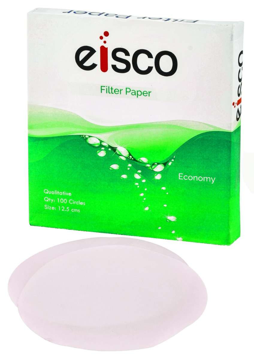 Pack of 100 standard economy filter papers. General filtration in the 8-10µm particle size range. Used in qualitative analytical techniques to determine and identify materials. Great for use in distillation experiments in schools or in coffee filtering at home.