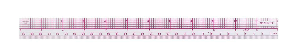 - Calibrated in 10ths to the inch on one side and centimeters on the other.