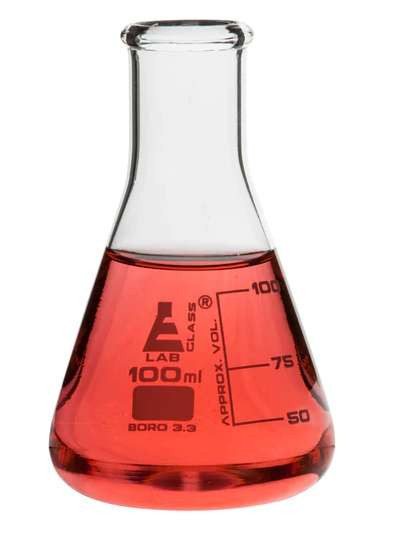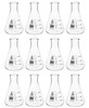 - Pack of 12 Erlenmeyer Flasks, each with 100mL capacity and easy-to-read white enamel graduations every 25mL
