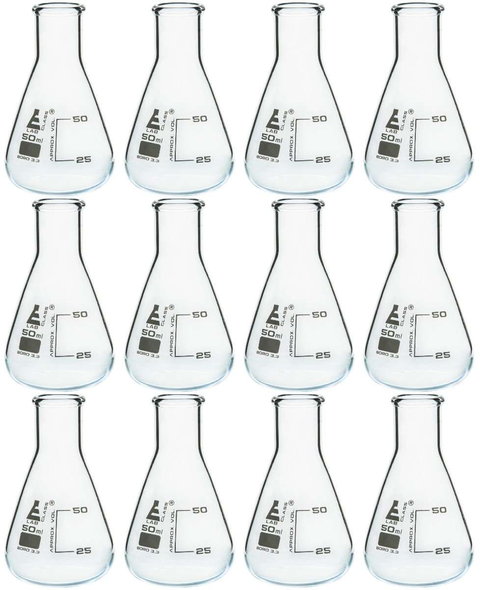 12 Pack Erlenmeyer (Conical) Flasks, 50ml - Borosilicate Glass
