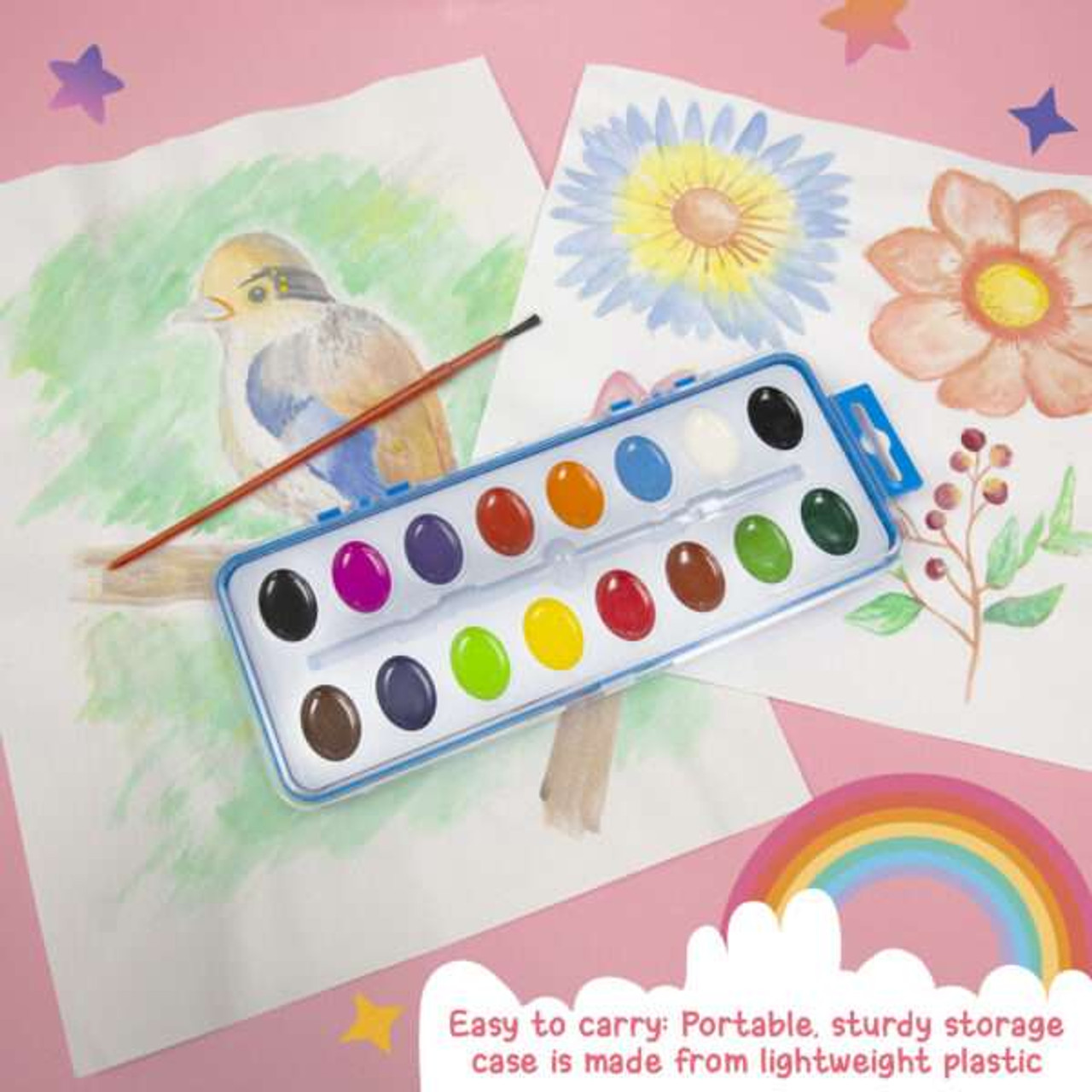 - QUALITY. This portable watercolor paint set for comes with awesome solid water color paints, packed in a plastic box, which is convenient for storage and carrying.