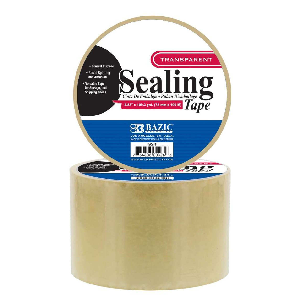 - STRONG ADHESIVE. BAZIC transparent or tan packaging tape unwinds smoothly and easily; resists splitting and tearing, adheres instantly and has a strong film backing.