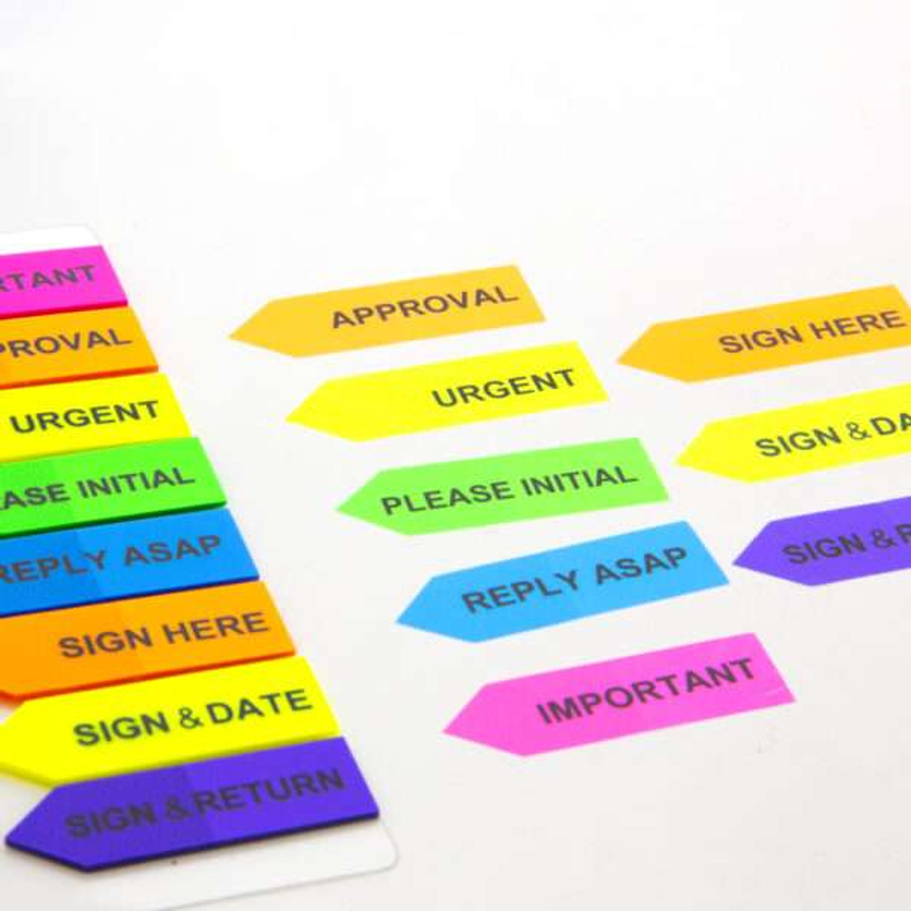 - UNLIMITED USES. Pre-printed with IMPORTANT, APPROVAL,URGENT, PLAESE INITIAL, REPLY ASAP, SIGN HERE, SIGN & DATE, SIGN & RETURN. Express yourself in color for your communication needs.