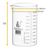 2000ml capacity, low form beaker made of Borosilicate 3.3 Glass. Beaker features a dual graduation scale, as per ASTM-E960, with graduation lines every 100ml. Spout for easy pouring. Uniform walls provide excellent strength against breakage. Beaker stands 7.9" tall, and has an inner diameter of 127mm and an outer diameter of 130mm.