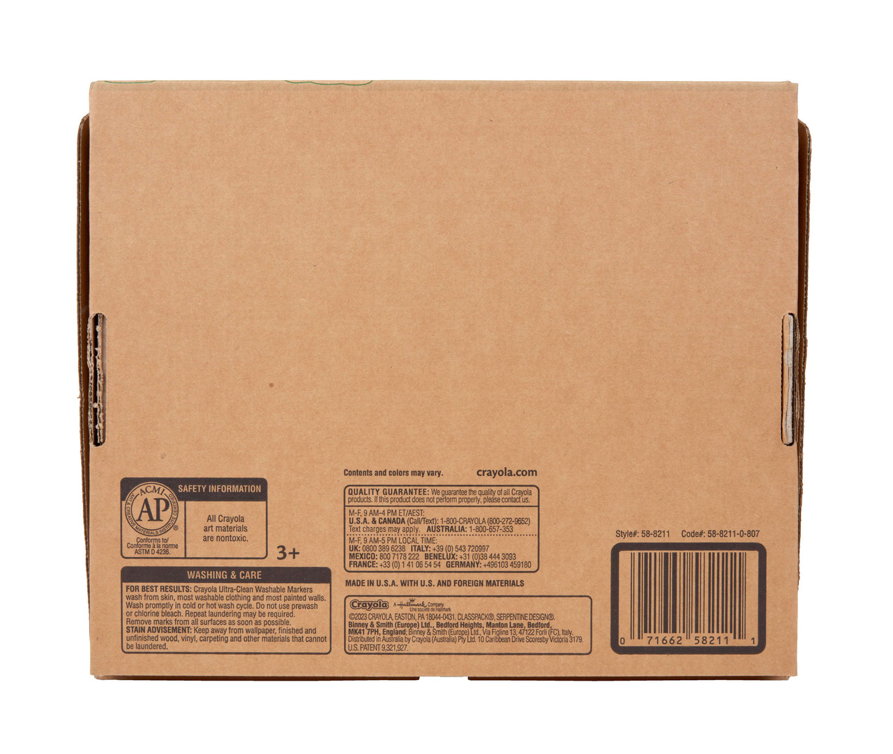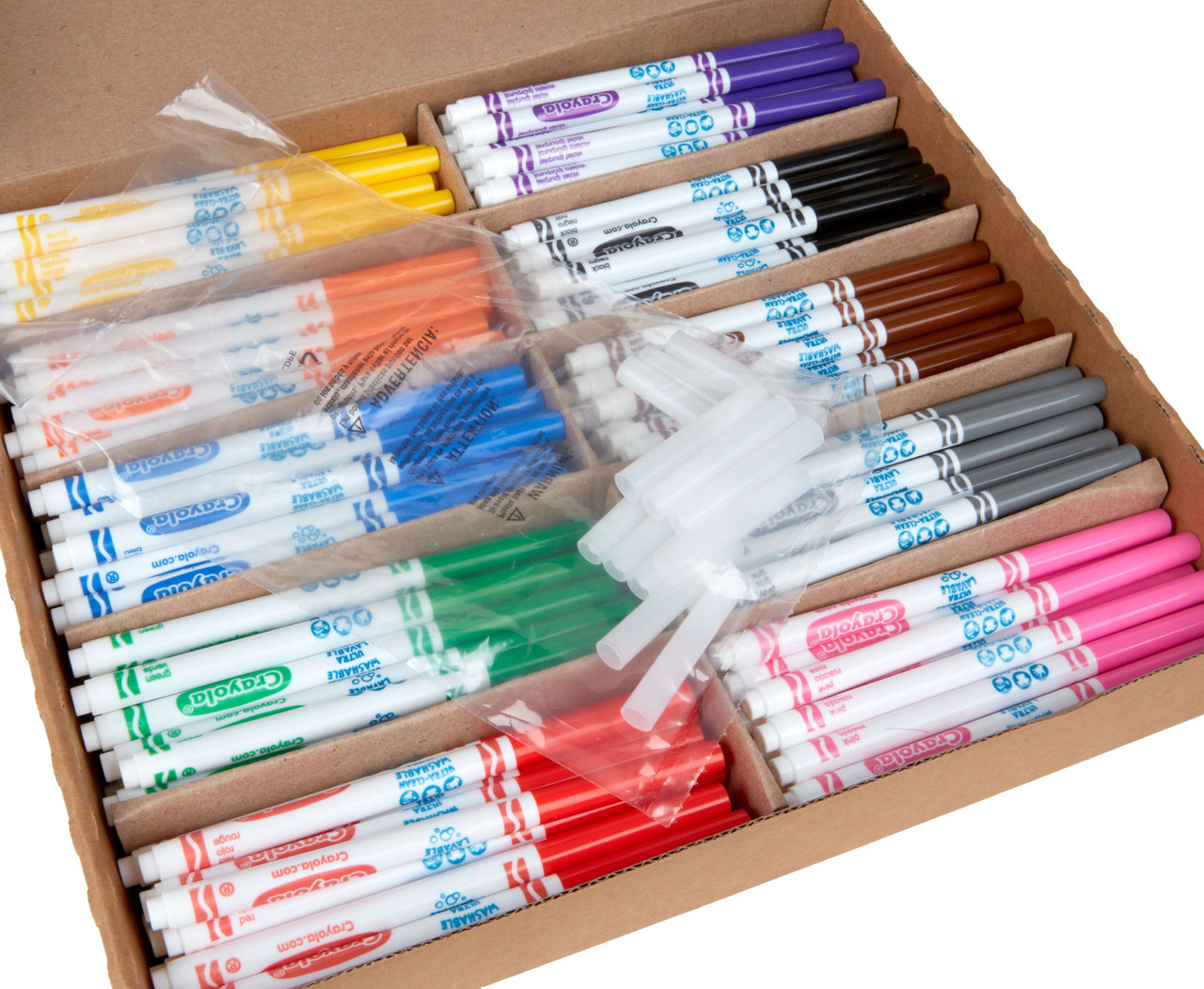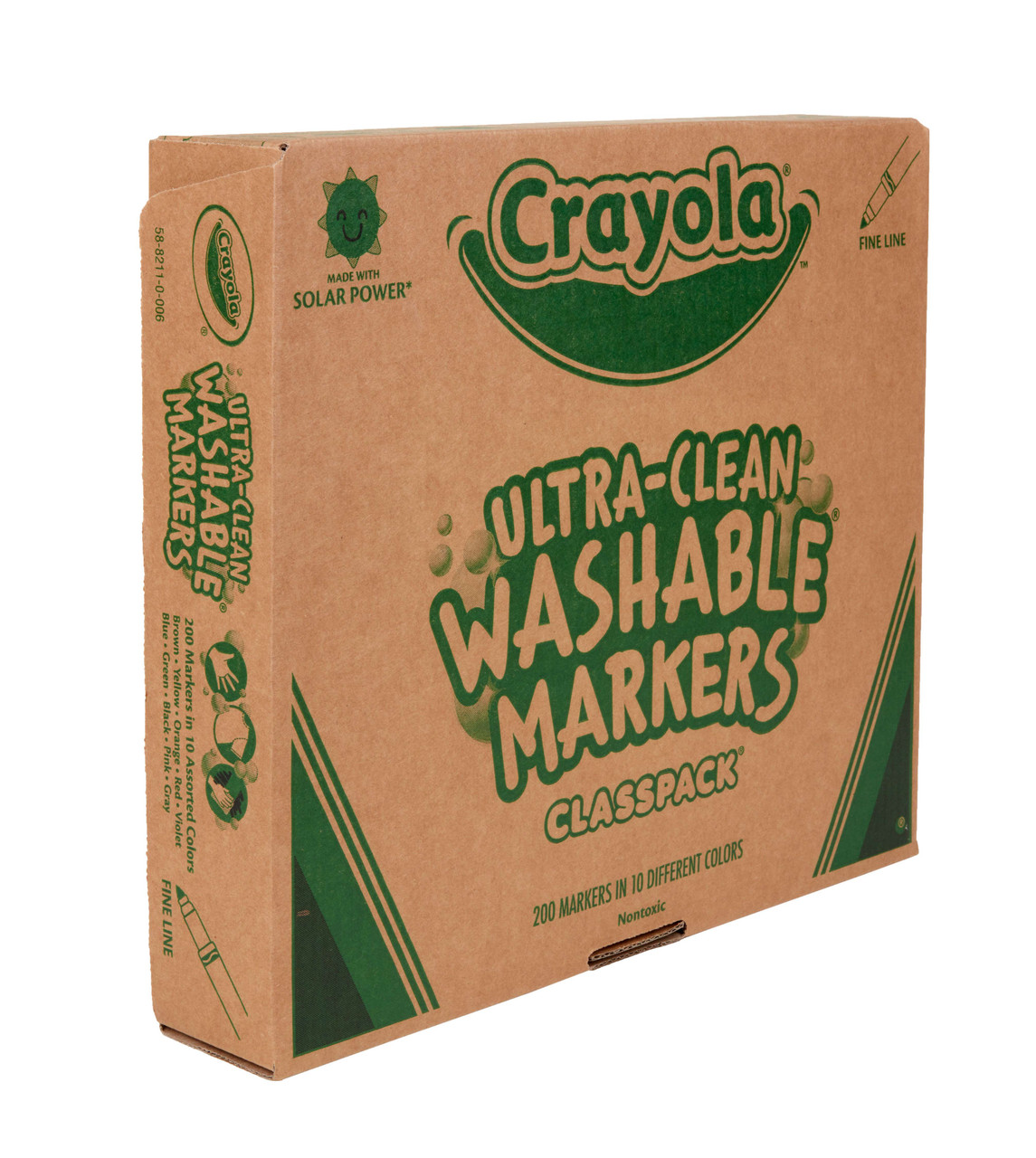Group projects are easier than ever with Crayola Ultra clean washable markers in aconvenient Classpack! This bulk marker set is designed for group activities, with a reusable marker box for easy storage and vibrant colors that parents and teachers can easily wash away. Safe and nontoxic, ages 4 & up.