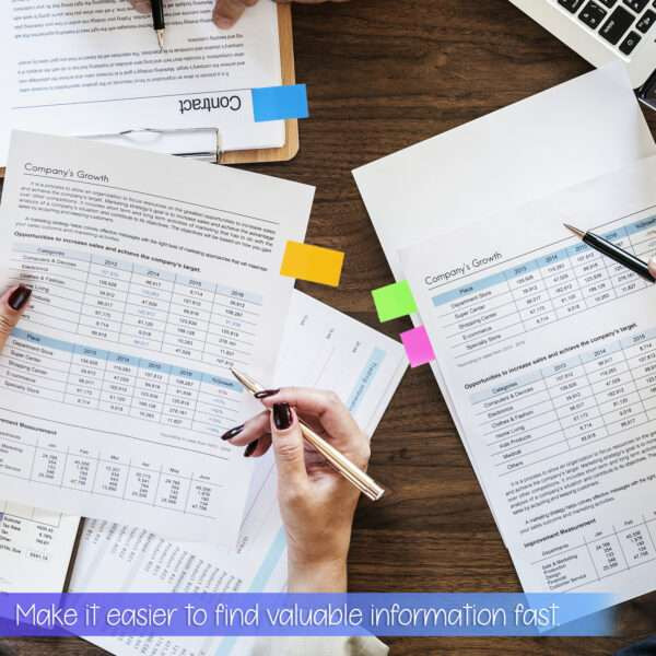 - PREMIUM MATERIAL. Made of wood pulp paper. Safe and environmentally friendly. Smooth surface, easy to apply and peel. Keep track of documents and chores with colorful reminders.