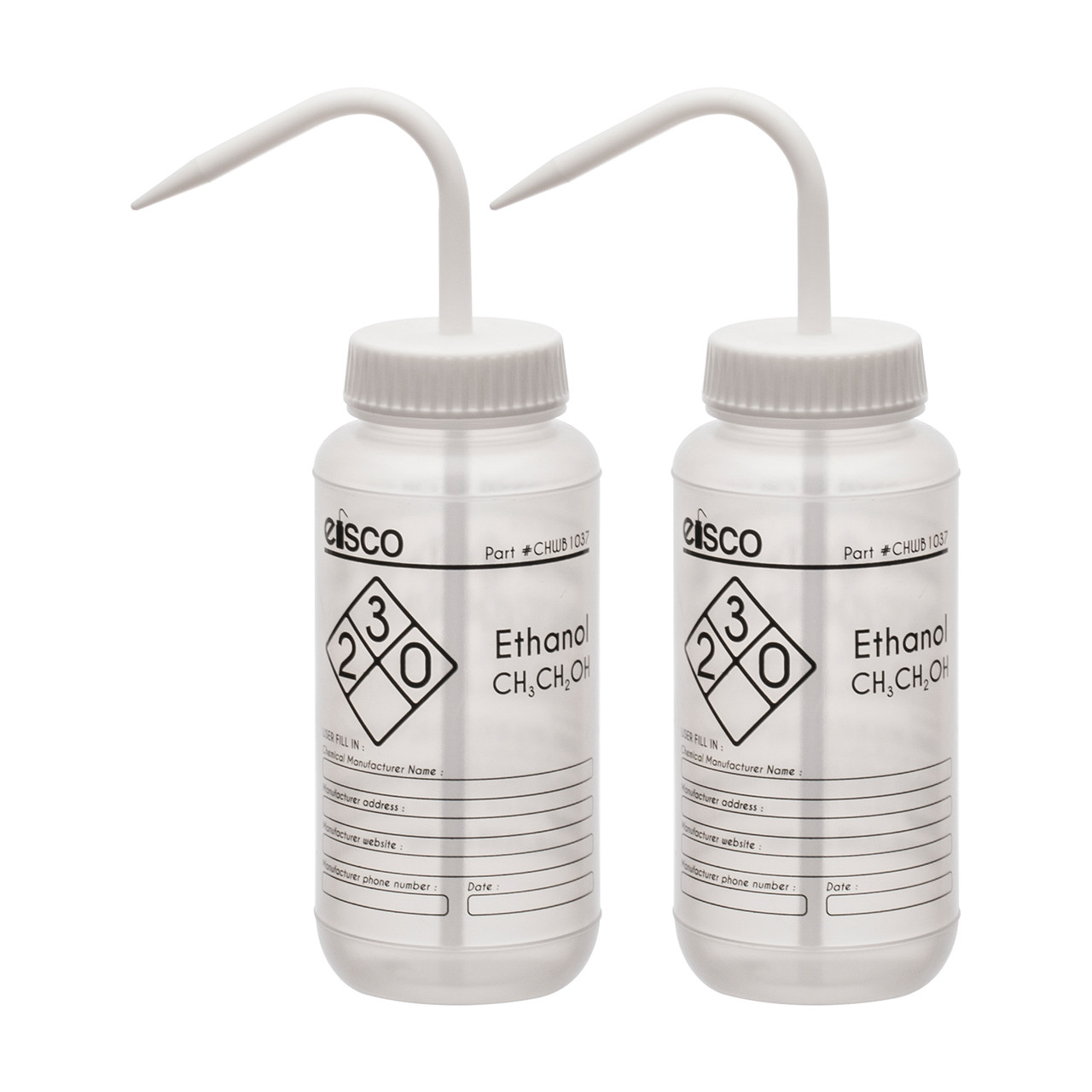 2PK 500ml Ethanol Wash Bottles - Wide Mouth, Labeled, Self-Venting