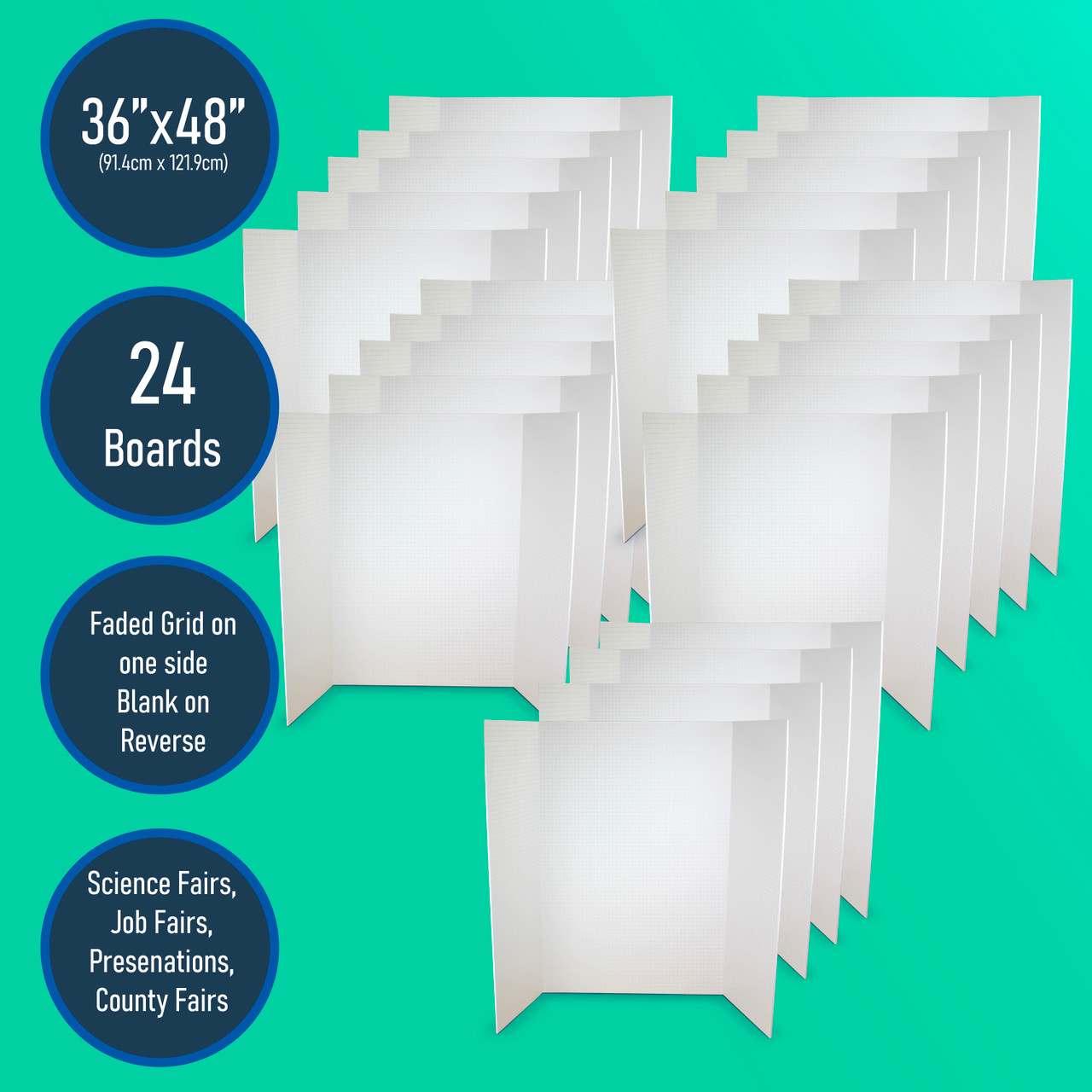 36” x 48” Fade-Line White Foam Trifold Poster Board, 1/2" Subtle Grid Lines for Alignment & Visual Layouts, Pack of 3