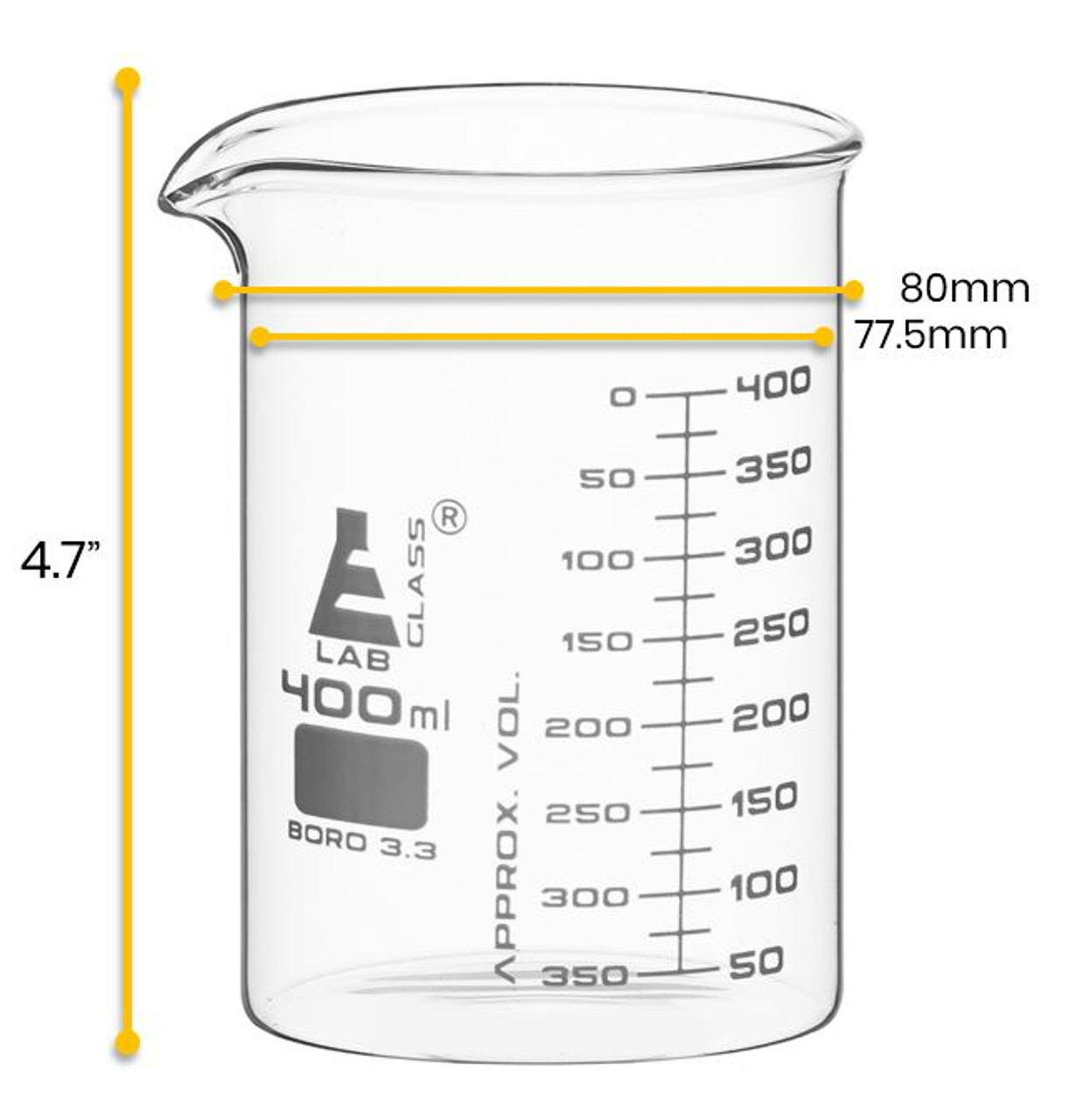 - 400ML CAPACITY || Beaker has a 400ml capacity and features white printed graduation lines every 50ml