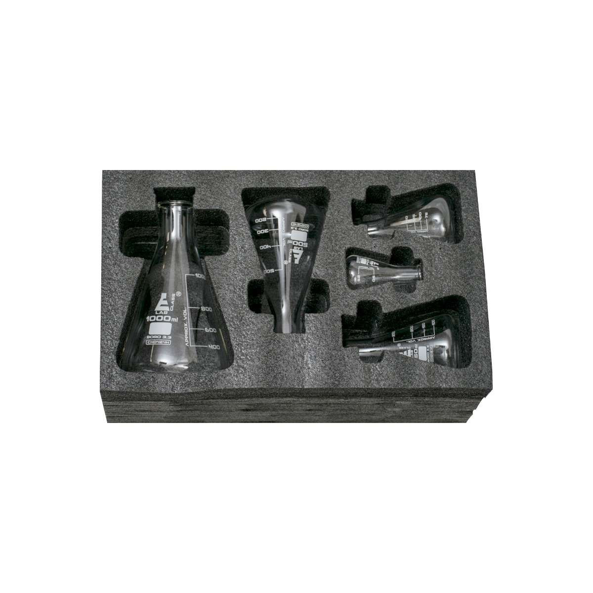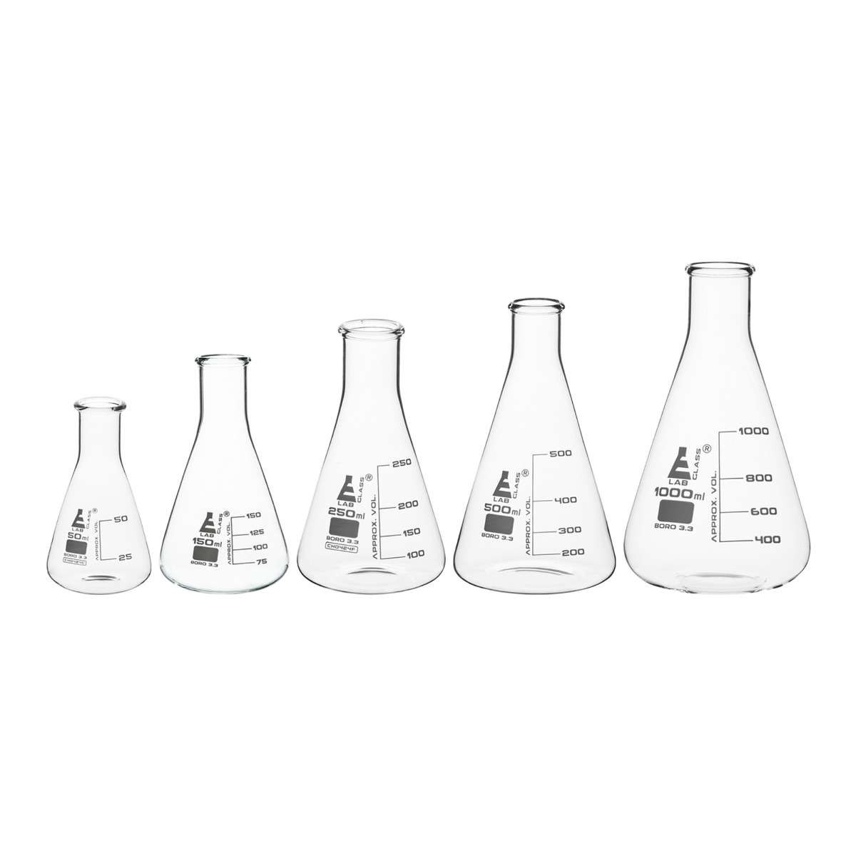 - 5 pc set includes Erlenmeyer flasks in 50ml, 100ml, 250ml, 500ml & 1000ml capacities