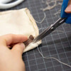 - MULTIPURPOSE. Precision cutting thick fabrics, cloth, wool, leather, knitted, denim, satin, silk, yarn, cotton, or foam packaging. Work as plant trimmer, cardboard, paper cutter, photos, or album too.