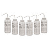 Pack of six chemical wash bottles made with Eisco Labs exclusive Performance Plastic. Made of low density polyethylene (LDPE) for superior quality, strength. Innovative Flex Ink won't fade, crack or peel. Each bottle is labeled for Ethanol featuring chemical information as well as hazard, safety, and first aid precautionary statements. Wide mouth for easy refilling. White color coded leak proof cap with built in nozzle included. Self venting design eliminates leaks & dripping.