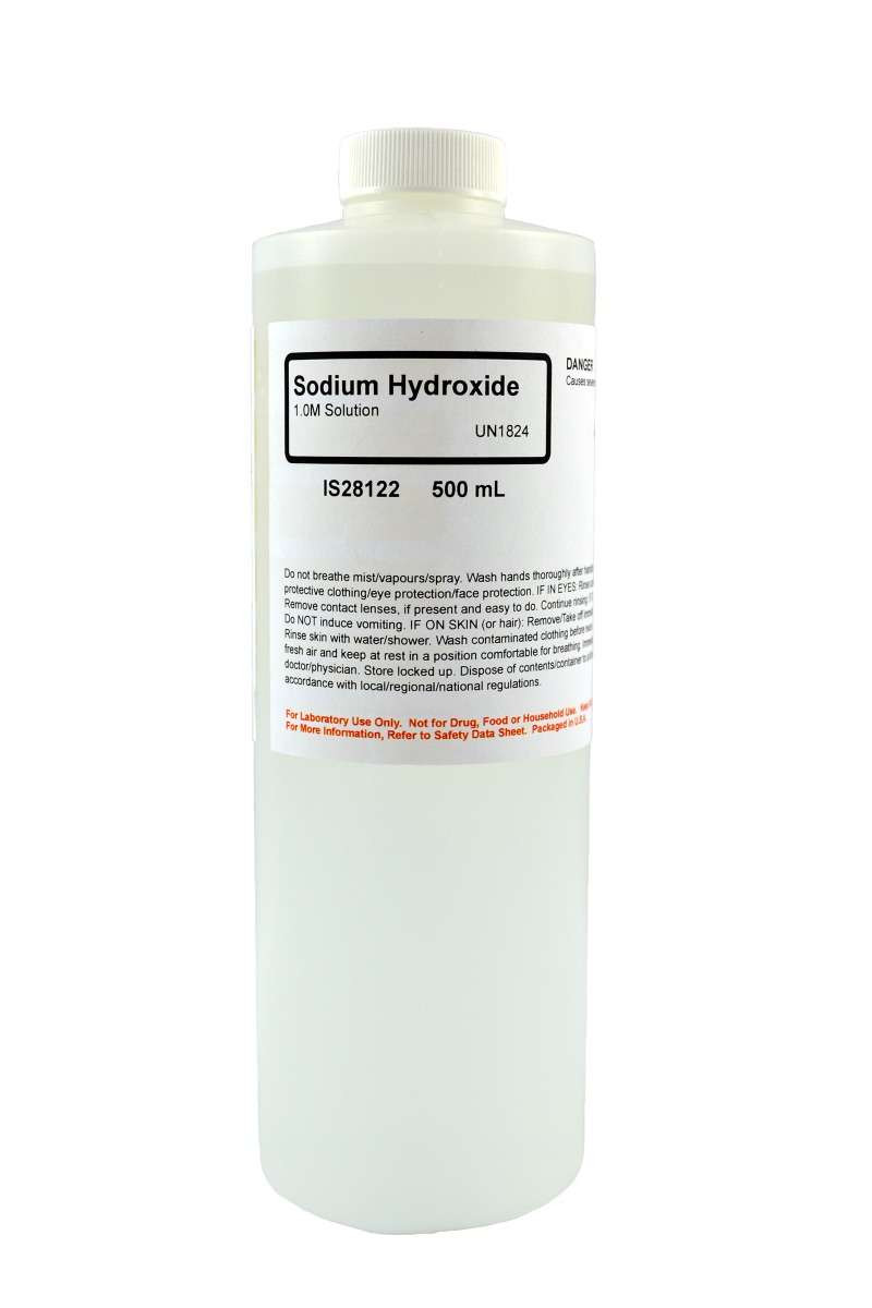 Innovating Science's 1M sodium hydroxide comes in a 500 mL bottle. Often used as a strong base, this makes the chemical a perfect fit in any educational lab dealing with chemistry or organic chemistry. Each bottle has safe handling and storage procedures printed directly on the bottle. This is a high-quality chemical product manufactured in the United States.