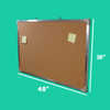 Our 36" x 48" aluminum framed cork bulletin board is commonly used as a display and communication tool, allowing individuals to tack and showcase notes, announcements, reminders, and various documents in a centralized and organized manner for easy access and information sharing. Self-healing natural cork that keeps push pins in place and no need to worry about pins falling out. Features plastic safety corners as well as 2 hooks to easily hang horizontally on any flat surface. Handcrafted in the USA.