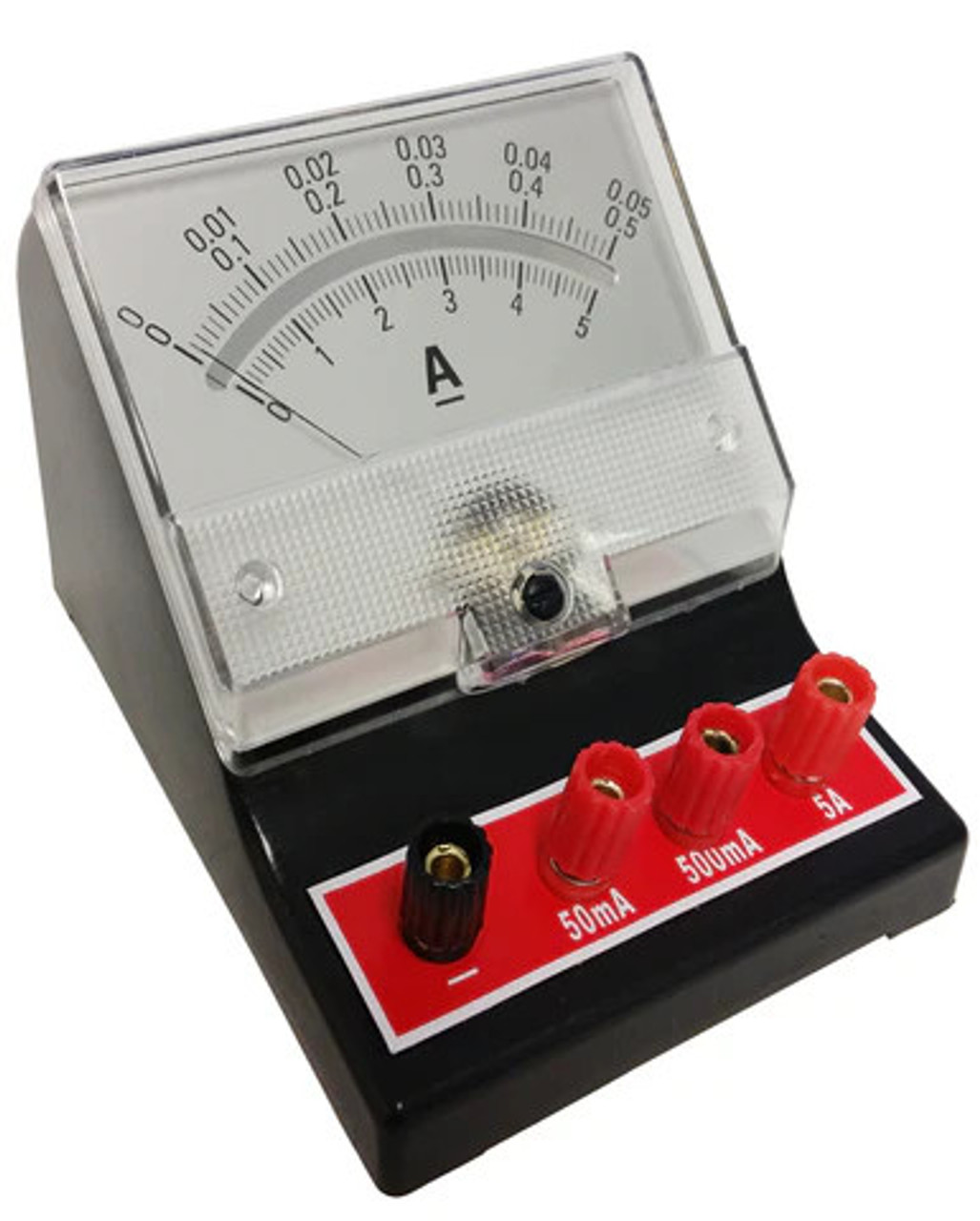 The Analog Ammeter by GSC International is a versatile and essential instrument for measuring direct current (DC) in various settings. This ammeter offers three selectable ranges—0mA to 50mA, 0mA to 500mA, and 0A to 5A—to suit a wide range of electrical experiments and applications.