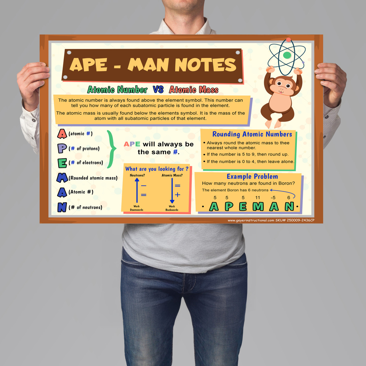 This large-format APE MAN Science Poster on corrugated plastic delivers a durable, eye-catching visual for teaching atomic concepts. Measuring 24"x36", it’s perfect for classrooms, science labs, or study areas that require a long-lasting, weather-resistant educational aid.
