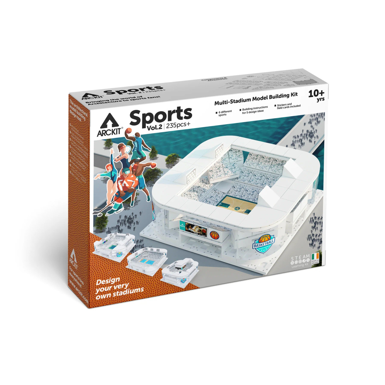 The scale model kit comes with 5 design templates and instructions for each variation. You can build everything from open-air and enclosed and semi-enclosed stadiums of your very own dream Basketball or Tennis arena!! Even build an interactive stadium where you can also slot in your cell phone and truly bring your stadium to life with 2D animations available via www.Arckit.com or by watching live action sporting events and playing your favorite sports games.