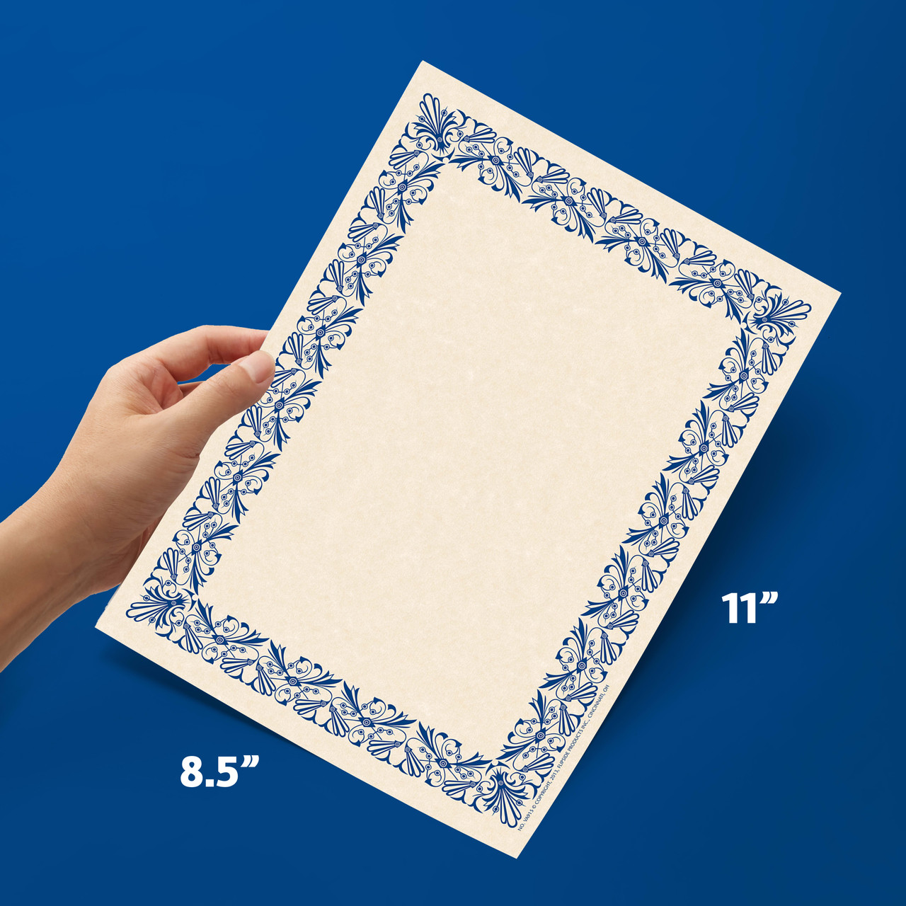 Art Deco Blue Border Paper is great for designing your own awards, certificates, diplomas, invitations, programs, and more! Great student incentives. Teachers and administrators can use our border paper for end of the school year awards and certificates. This border paper features a wide decorative frame on cream colored stock for a classic look. Printed in full color on high quality matte paper. Can be printed or handwritten. Inkjet and laser printer friendly. Available in a pack of 50 and measures 8.5" x 11".