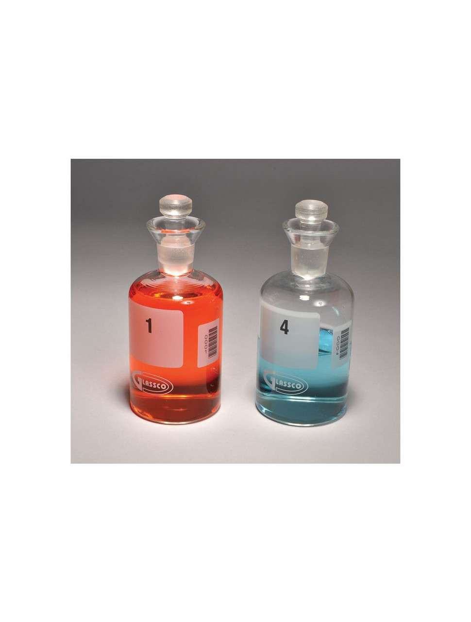 Pack of 24 glass BOD bottles with 300ml capacity. Ideal for incubating diluted samples of clean, waste, effluent and polluted water during the five-day biochemical oxygen demand (BOD) test. Printed barcodes and numbers assist with organization; bottles are numbered sequentially in an increment of 24, within the range of 1 to 432. Glass robotic stoppers included.