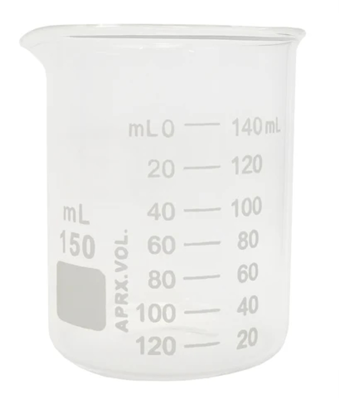 Beaker, Griffin Style, 150ml Capacity, Borosilicate Glass, Graduated. Case of 192.