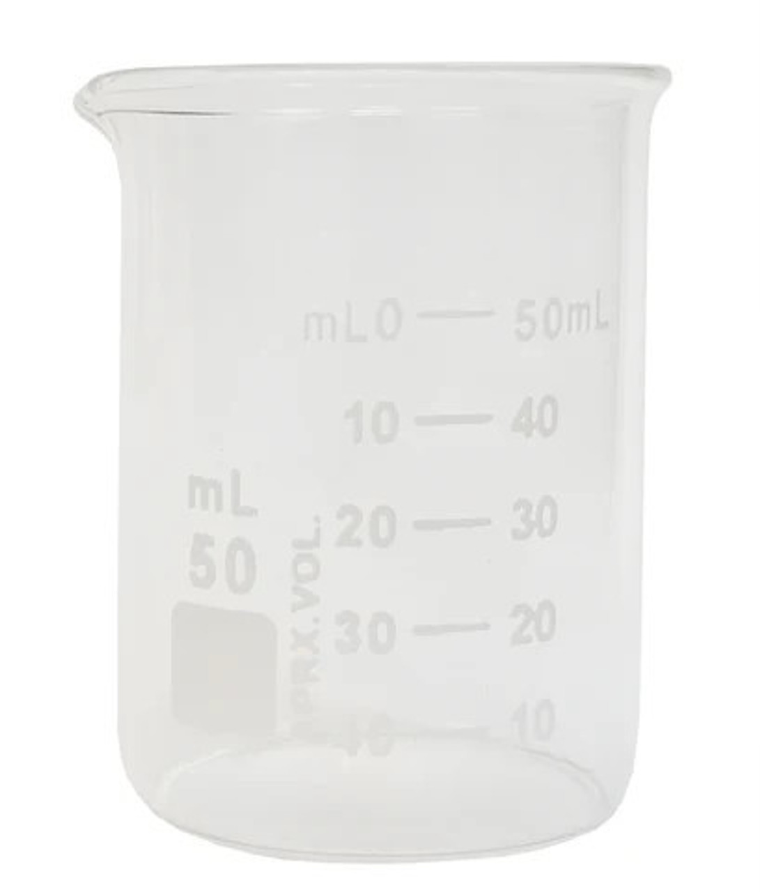 Beaker, Griffin Style, 50ml Capacity, Borosilicate Glass, Graduated. Case of 192.