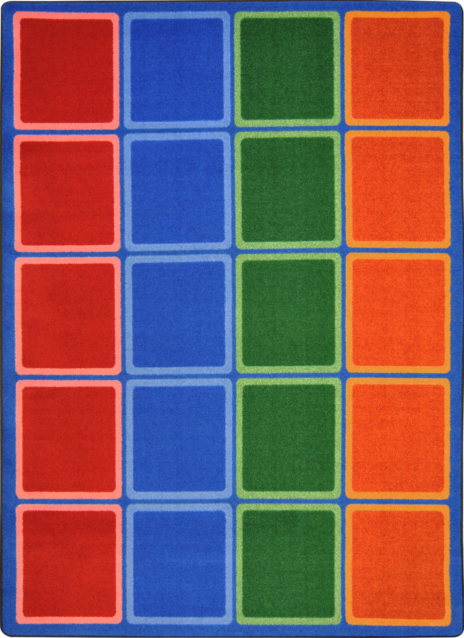 Don't have a ''mental block'' about getting ''blocked out'' of a space because ''blocks abound'' on this vibrant classroom carpet. The Size C rug has 20 spaces, and Sizes D and G have 30 spaces each.
