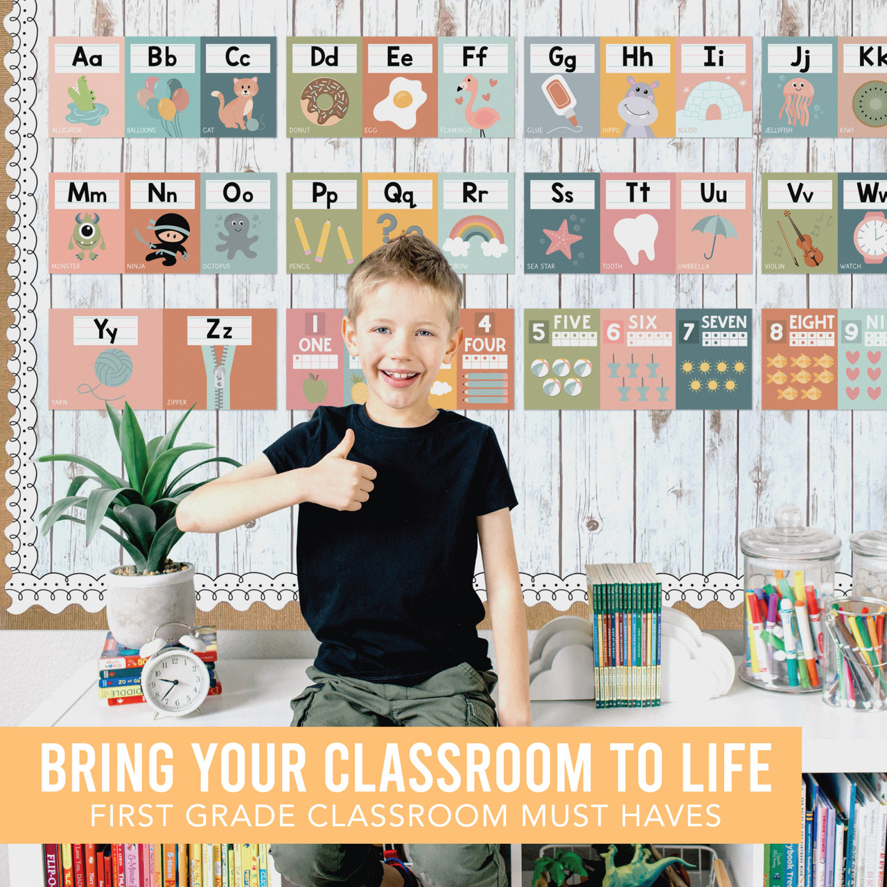 Boho Muted Number Line & Alphabet Letters - Classroom Wall Set