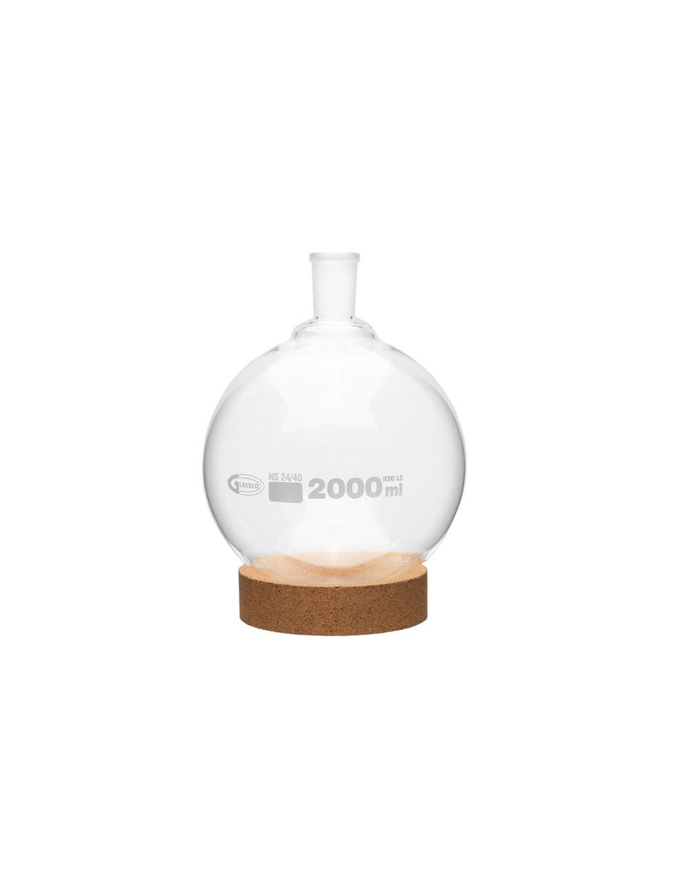 Round-bottom boiling flask with 2000ml capacity and ground glass joints (24/40). Made from low-expansion borosilicate glass, this flask features uniform wall thickness for superior mechanical strength and shock resistance.