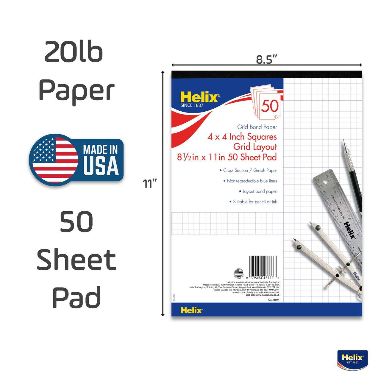 Bond Paper 1"=4x4 Grid 50 Sheet Pad - 8.5" x 11", 50 pads