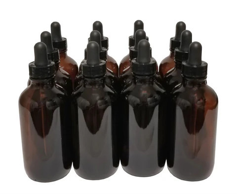 Bottle Flint Glass, Boston Round, Amber Color, 1 ounce, with dropper assembly. Case of 144.