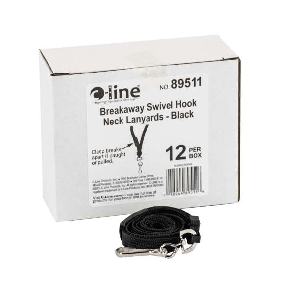 Breakaway Lanyards, Black, Swivel Hook, 12/BX