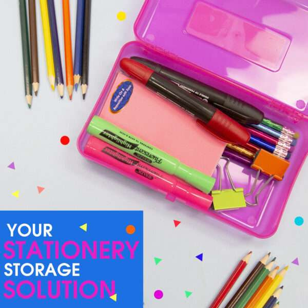 - BRILLIANT DESIGN. Assorted Colors. Clear and transparent design keeps contents visible. Allows you to see through the box to easily locate items. Available in bulk school supplies to save your costs.