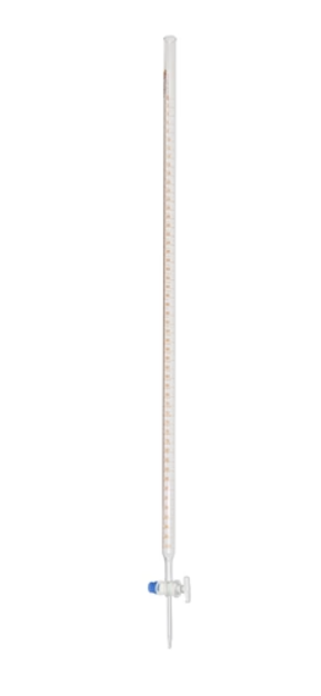 - These glass burettes have a straight bore, pre-greased ground glass stopcock, and permanent graduations, subdivided at 0.2 milliliter up to 100 milliliters in an easily read amber color.