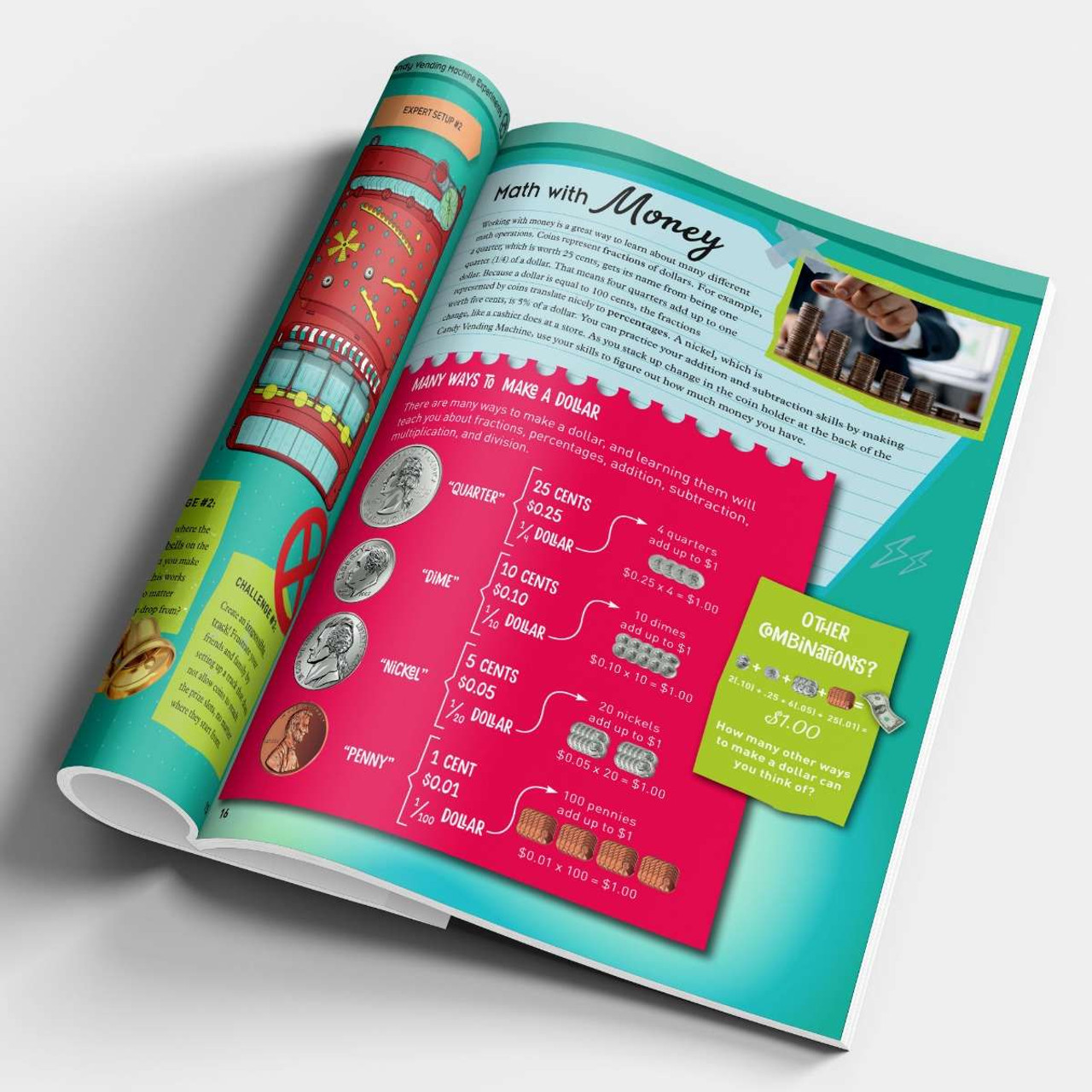 Explore lessons in physics, math, and mechanical engineering as you build and play with the vending machine. Learn about gears and other simple machines, gravity, forces, motion, and collisions. Try some simple math lessons related to the coins and money.
