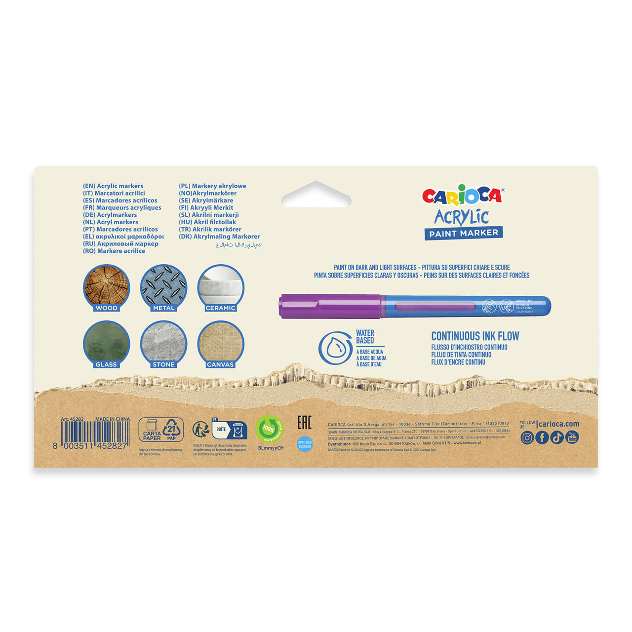 CARIOCA Acrylic Paint Marker - 18 Count Markers per Box (Pack of 24 Boxes)