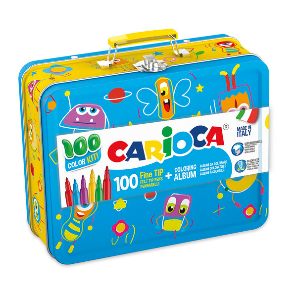 CARIOCA Metal Case - 100 Count Markers & Coloring Album per Box (Pack of 1 Box)