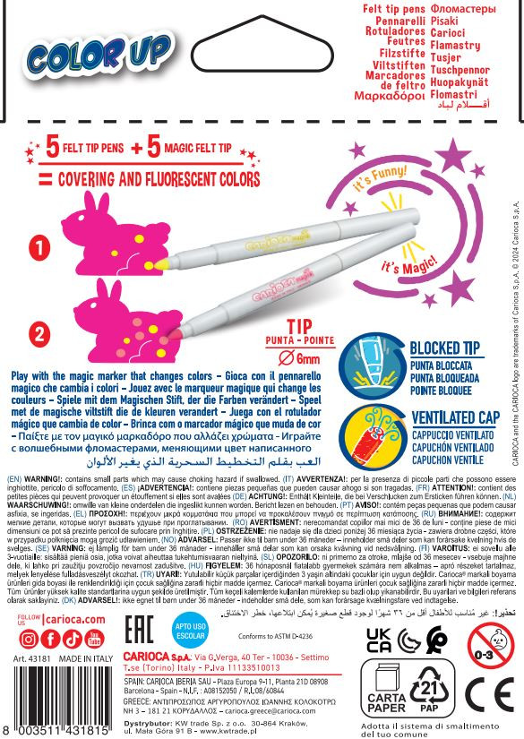 CARIOCA Magic Color Up - 10 Count Markers per Box (Pack of 24 Boxes)