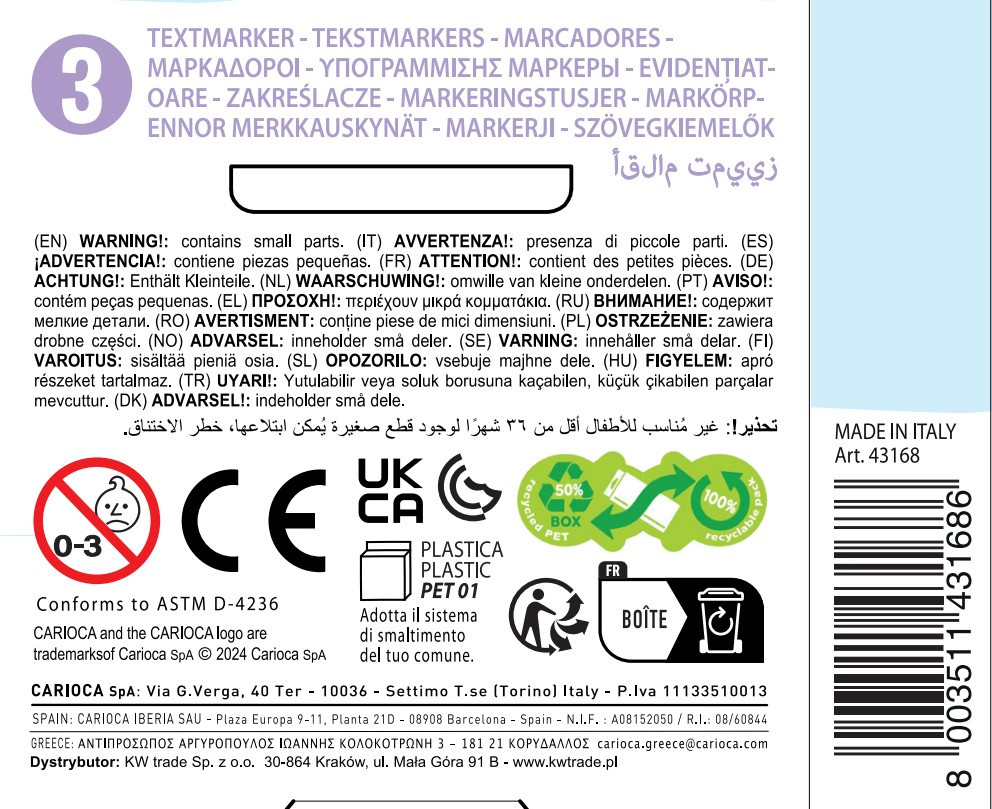 CARIOCA Pastel Highlighters Mini - 3 Count Higlighters per Box (Pack of 24 Boxes)