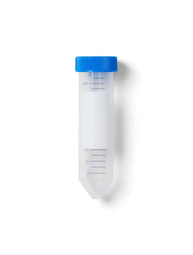 Case of 500 polypropylene tubes with conical bottoms and 50ml capacity. Blue HDPE leak-proof screw caps included.