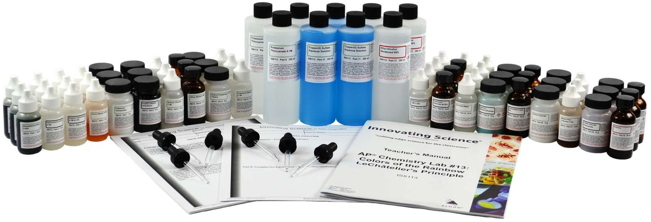 Students will investigate Le Chatelier's principle and why it works. They will also investigate this principle by testing several systems at equilibrium and then selecting specific ones to produce the colors of the rainbow based on specific applications of Le Chatelier's principle. Students will then be challenged by selecting which reaction system to use for which color in producing the rainbow while trying to only use a given “stress” once. The activity contains enough materials for 15 groups of students as well as a Teacher's Guide and Student Study Guide Copymasters. Meets Big Idea 6, Investigation 13, Primary Learning Objective 6.9.