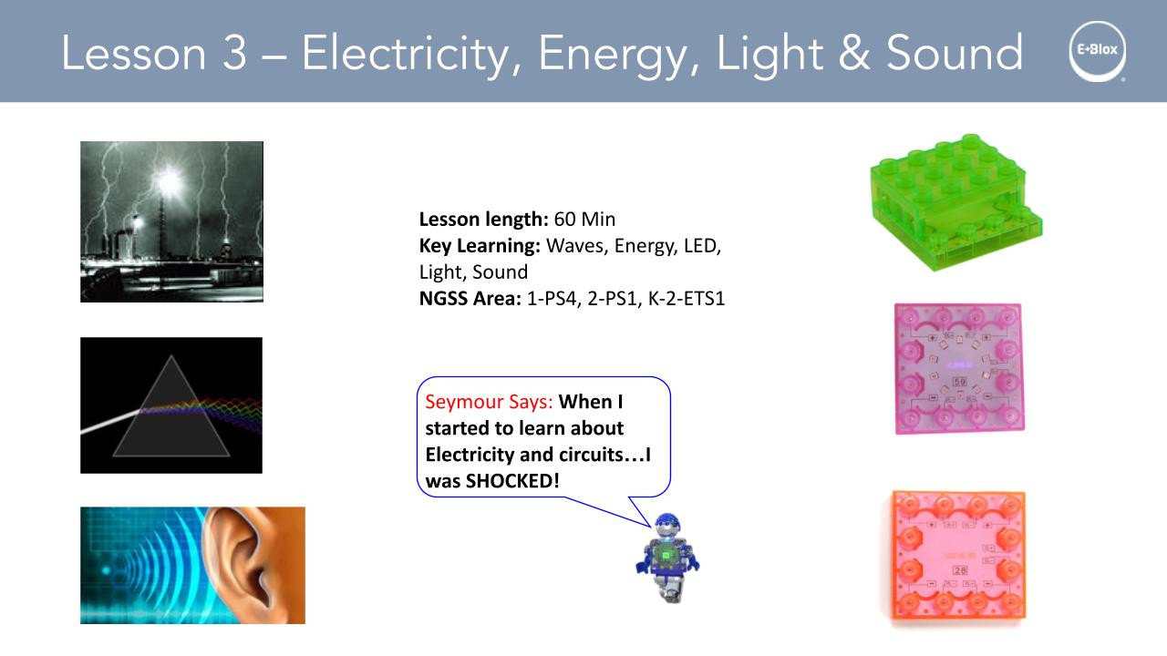 This kit includes the Circuit Blox BYO Sound Activated Dancing Lights kit (CB-0194) along with lesson based animated online curriculum that meets NGSS requirements and includes teacher guides, Quizzes & Quiz Answer sheets.