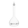 Borosilicate glass volumetric flask with white markings, fitted with a solid glass stopper, in compliance with ASTM-E288 standard. 12.5" Height and 4.5" diameter with a 3.5" flat base. Capacity 1000 ml, Tolerance ±0.300ml, stopper no. 22 Eisco Labs Borosilicate glass has the following heat tolerances: Strain Point -515°C | Annealing Point 565°C | Softening Point 820°C. Calibrated to contain. Eisco Labs proudly manufactures its own products using state-of-the-art equipment, and following the highest standards of quality control.