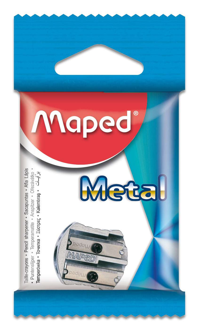 Keep your pencils sharp with the Maped Classic Metal 2 Hole Pencil Sharpener! The 2 high quality steel blades are mounted in a durable metal frame and easily sharpen all standard and jumbo pencils. And the small size makes it great for pencil cases, bags, desks and more!