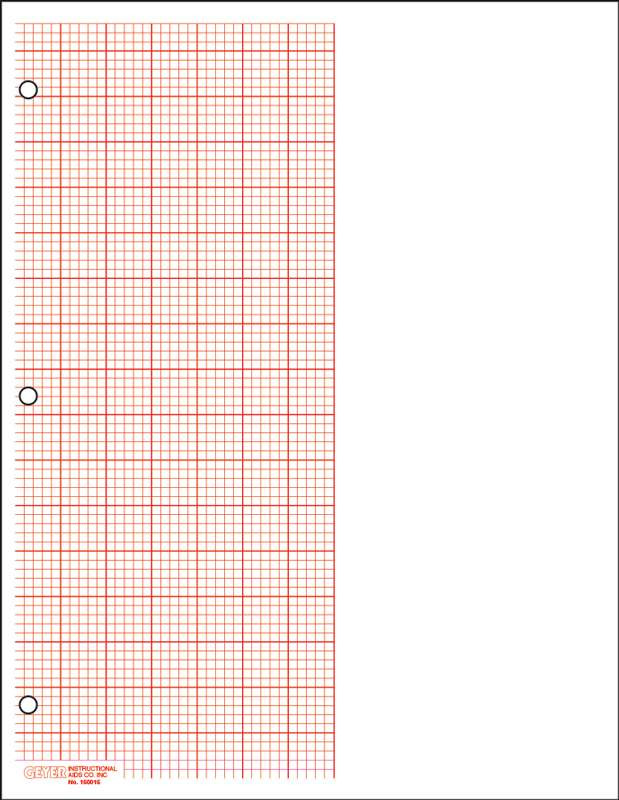 Classic, High quality, Half sheet graph paper with red grid has 1/8" squares printed on the left half allowing room to work out equations and write comments. Â The 8.5" x 11" 40 lb paper is double sided and three-hole punched for the convenience of the teacher and student. There are 500 sheets in the ream.