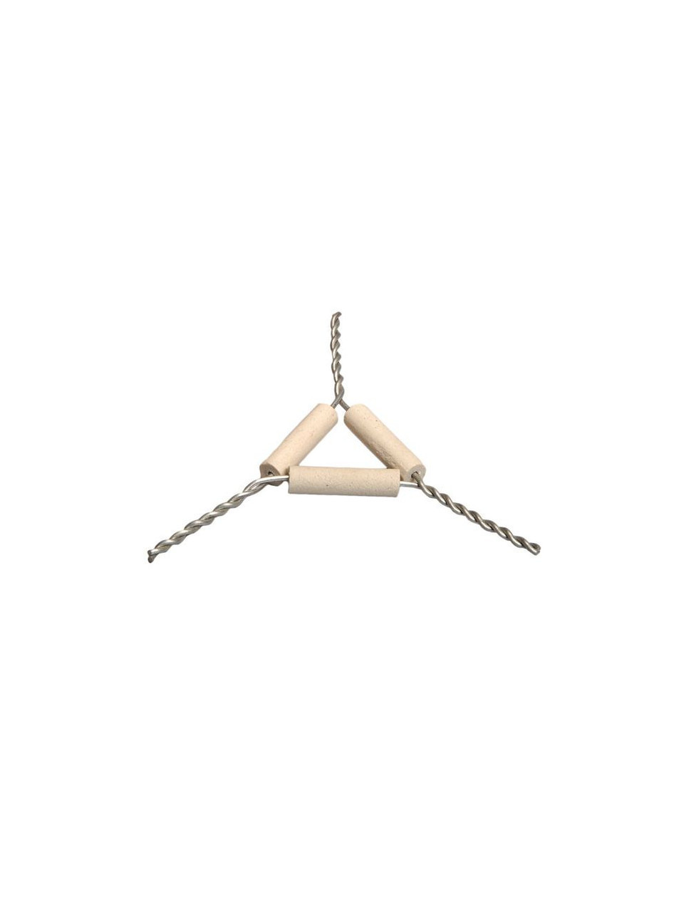 Support a crucible being heated with this quality pipeclay triangle. Constructed from clay pipes mounted on heavy gauge twisted galvanized steel wire. Sides measure 3" in length.