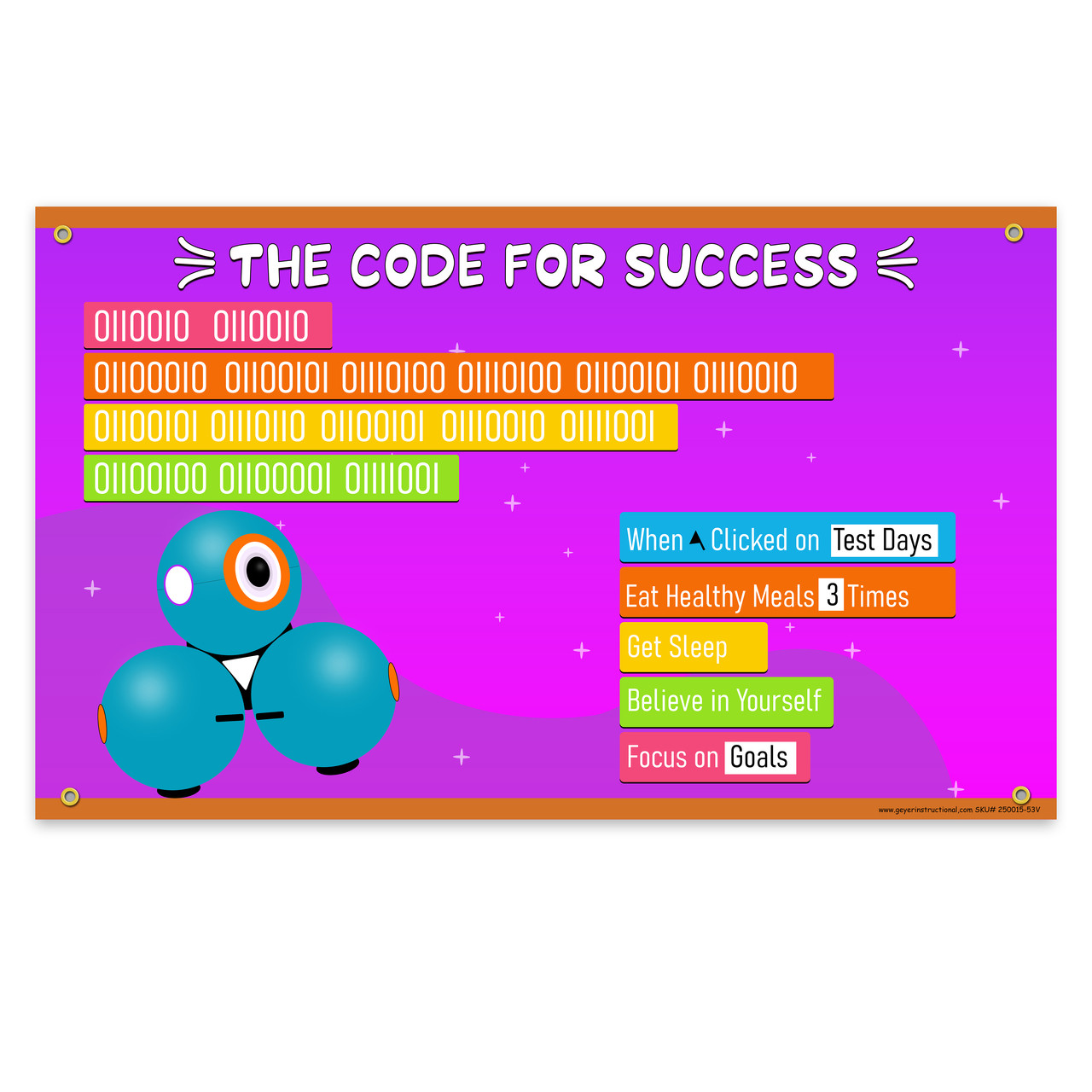 Elevate your classroom or coding lab with the bold and motivational "Coding for Success" Banner. Measuring 5 feet by 3 feet, this premium 13 oz vinyl banner is built to last—perfect for both indoor and outdoor display. Pre-installed metal grommets make hanging quick and hassle-free. Inspire creativity, persistence, and digital literacy every day!